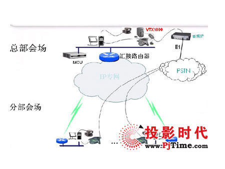 VTX1000電話會議設(shè)備,主會場程控交換機(jī)機(jī)房配備一套可行MPS2000音頻橋;其他各分會場只需要分別配備一套POLYCOM