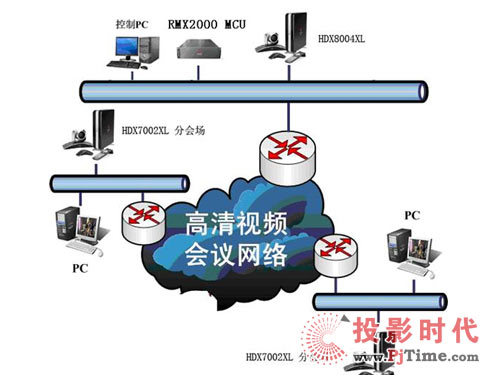 - 采用2Mbps專線方式組網(wǎng),實(shí)現(xiàn)全高清視頻會議
