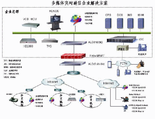 VCON提供了以HD系列的視頻終端產(chǎn)品和以VCB系列的多點控制單元(MCU)產(chǎn)品來構(gòu)建基于IP網(wǎng)絡(luò),采用H.323協(xié)議作為標(biāo)準(zhǔn)協(xié)議的視頻通信解決方案。通常主會場選擇會議室型終端HD5000,該終端在64Kbit/s下就可以實現(xiàn)畫面流暢的動態(tài)雙流;主會場也可以選擇機(jī)架式會議終端HD2000,這樣主會場可以選配正裝和吊裝攝像機(jī),拍攝會場不同角度的場景;多點控制單元(MCU)選擇VCB3000,同時可以為領(lǐng)導(dǎo)、個人桌面或者出差用戶單獨(dú)配置支持H.323標(biāo)準(zhǔn)的Vpoint HD軟終端,該終端是目前業(yè)界惟一支持H.264、雙流、組播接受以及遠(yuǎn)程控制的軟終端產(chǎn)品。