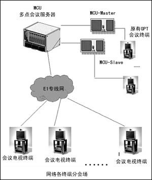 對用戶來說,本方案優(yōu)勢在于:保持原有網絡結構不變,充分利用原有系統(tǒng)設備(包括MCU和終端);保持政府會議繼續(xù)采用專線網絡,安全性、穩(wěn)定性高;使用E1/2M傳輸專線,保證會議的圖像和聲音質量;該系統(tǒng)同時支持H.320/H.321/H.323協(xié)議,即可同時采用E1專線,ISDN撥號,IP網、ATM網等方式開會,將來能夠靈活、平滑擴展到各種系統(tǒng)中去,最大地保護了用戶的投資和資源。