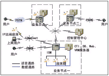 每個業(yè)務(wù)節(jié)點(diǎn)都由ISM(智能交換模塊)、CTI服務(wù)器、DB(數(shù)據(jù)庫)、VRM(語音資源模塊)和座席等模塊構(gòu)成,下面逐一介紹各模塊的作用和功能。