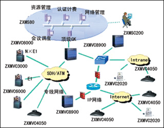 中興通訊寬帶高清晰度多媒體視訊系統(tǒng)采用MPEG-2和多信道協(xié)同處理技術(shù),通過寬帶傳輸網(wǎng)絡(luò),提供實時、雙向、交互式的可視會議服務(wù)。其核心是位于網(wǎng)絡(luò)中心的ZXMVC8900多媒體視訊服務(wù)器和ZXMVC 6000高清晰度會議電視終端設(shè)備。同時還能接入H.320、H.323類型的會議電視終端,并結(jié)合流媒體服務(wù)模塊。