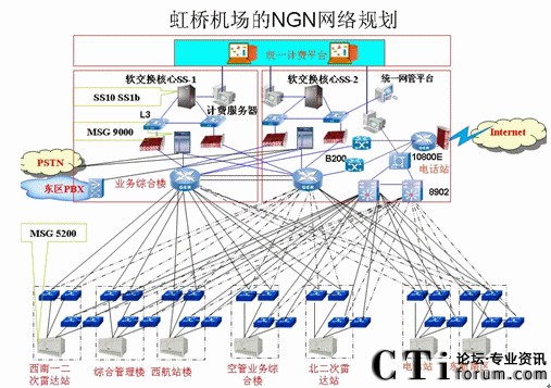 虹橋機(jī)場(chǎng)程控交換機(jī)新建和擴(kuò)容項(xiàng)目,實(shí)際上是一個(gè)包含多業(yè)務(wù)的項(xiàng)目和系統(tǒng),即以數(shù)據(jù)網(wǎng)絡(luò)作為基礎(chǔ)承載平臺(tái),軟交換作為核心技術(shù),為用戶(hù)提供了豐富的業(yè)務(wù),很好地解決了話音、數(shù)據(jù)業(yè)務(wù)的融合。