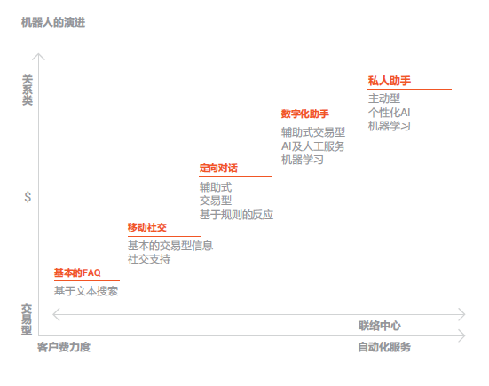 客戶服務(wù)智能化: 就是通過對(duì)服務(wù)流程的優(yōu)化或改造以支撐AI技術(shù)應(yīng)用最終達(dá)到提升人工效率和客戶體驗(yàn)的過程。在用戶層面包括:語音或文本聊天機(jī)器人、實(shí)體機(jī)器人、虛擬座席、智能IVR 、智能外呼等。在座席層面包括:智能知識(shí)庫、智能工單系統(tǒng)、智能營銷輔助系統(tǒng)、流程機(jī)器人、座席學(xué)習(xí)系統(tǒng)、座席情緒感知系統(tǒng)等。在管理層面包括:智能質(zhì)檢系統(tǒng)、智監(jiān)控系統(tǒng)、智能 分析系統(tǒng)、智能排班系統(tǒng)等。