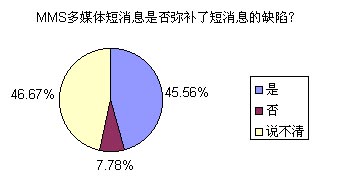 問卷的調查結果有些屬于意料之中,有些則暫一定程度上給運營商和終端提供上潑了冷水。不過,有一點是讓提供移動服務的企業(yè)感到欣慰和滿意的,那就是:最終用戶對MMS的接受程度相當高,除去對資費、操作的質疑外,幾乎90%以上的用戶都認為MMS廣泛流行是一個必然的趨勢。下面我們就讀者們廣泛關注的問題來研究一下。