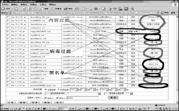 通過統(tǒng)計(jì)功能,管理員可以針對日期、過濾對象、發(fā)件人、病毒等條件進(jìn)行郵件的統(tǒng)計(jì),通過統(tǒng)計(jì)可以了解郵件系統(tǒng)的信件流量、個(gè)別用戶的信件流量、垃圾郵件的過濾率、病毒郵件的數(shù)目以及各種郵件的收/發(fā)件人信息,便于了解整個(gè)郵件系統(tǒng)的工作情況。