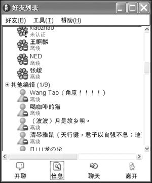 注意:在默認設(shè)置下Gaim是不顯示離線好友的,當(dāng)然,你也可以在“好友”菜單中選中“顯示離線好友”項。