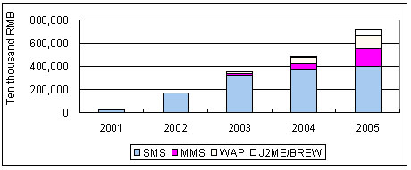 由于SMS、MMS、J2ME/BREW能帶來(lái)的收入較為可觀,目前整個(gè)移動(dòng)增值服務(wù)價(jià)值鏈的資金主要流向該三類業(yè)務(wù)。在SMS領(lǐng)域,產(chǎn)業(yè)鏈合作活躍,SP對(duì)游戲、交友、鈴聲、圖片等業(yè)務(wù)的投入很大;MMS適合點(diǎn)對(duì)點(diǎn)應(yīng)用以及信息點(diǎn)播服務(wù),市場(chǎng)潛力也很大;J2ME/BREW則以開發(fā)交互式業(yè)務(wù)為主,同時(shí)因是未來(lái)發(fā)展方向,屬于戰(zhàn)略性產(chǎn)品,倍受產(chǎn)業(yè)鏈的重視;WAP產(chǎn)品在移動(dòng)增值服務(wù)市場(chǎng)上將長(zhǎng)期存在,但占整個(gè)移動(dòng)增值服務(wù)市場(chǎng)的份額比較低。