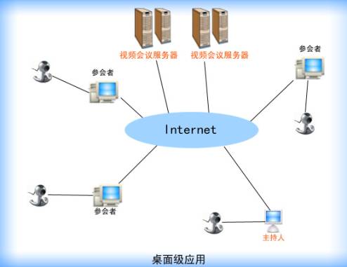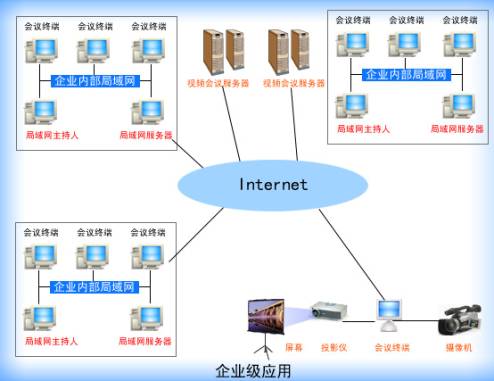 在企業(yè)級別的應(yīng)用中,企業(yè)將服務(wù)器構(gòu)架在公司內(nèi)部,遠(yuǎn)程用戶及局域網(wǎng)內(nèi)部的用戶均可登錄服務(wù)器,實(shí)現(xiàn)交互。企業(yè)級視頻會議系統(tǒng)的應(yīng)用實(shí)際上就是將桌面級視頻會議與會議室級視頻會議系統(tǒng)有機(jī)的結(jié)合在一起,客戶端硬件外設(shè)可以按照以上的建議,根據(jù)各終端不同的需求進(jìn)行配置。