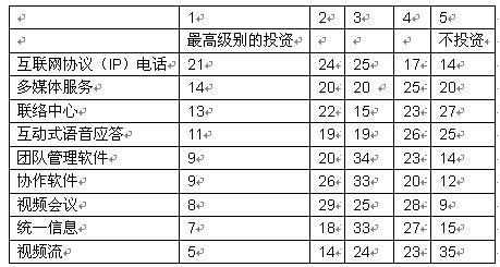 許多早期接受融合網(wǎng)絡的主要動因是為了減少語音成本。語音電話(VOIP)技術使融合網(wǎng)絡環(huán)境中的這一切都成為可能。語音電話實現(xiàn)了互聯(lián)網(wǎng)上的呼叫路由,繞過公共交換電話網(wǎng)絡(PSTN)進行傳輸,從而避免了昂貴的費用。我們的調查顯示,大部分公司將會在中短期內把投資重點集中在融合網(wǎng)絡應用上。