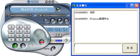 VXP擁有一個特別的“文本聊天”功能,也許大家會說既然是可視電話還要文本聊天干嘛?其實這個工具還是還有實用價值的。首先,當你的麥克風沒有調整妥當,對方無法聽到你的聲音時,文本聊天就可以充當一個候補的溝通手段;另外,你在通話中需要給對方發(fā)送一些比較難記的信息,比如一個復雜的網址,這時通過文本發(fā)送遠比用口述方便得多。