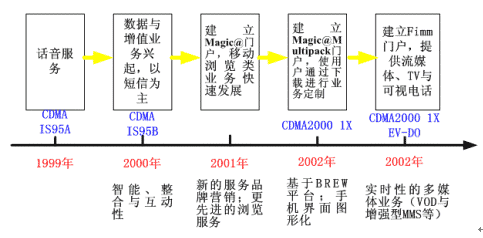 通過與手機芯片廠商密切合作并依靠韓國終端廠商較強的制造能力,KTF較早地解決了CDMA2000 1X手機與EV-DO手機的基本性能問題(性能對比見表3),不僅抵消了用戶的使用顧慮,而且也為不斷推出新的高速數(shù)據(jù)與增值業(yè)務(wù)奠定了較好的終端應(yīng)用基礎(chǔ)。