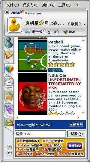 3) 拼接代替加強(qiáng),F(xiàn)有應(yīng)用的簡(jiǎn)單決定了IM軟件本身的簡(jiǎn)單,因此IM本身變得不受關(guān)注,廠商所作的大多是功能拼接,例如MSN加強(qiáng)聯(lián)網(wǎng)游戲,QQ傍上移動(dòng)。甚至可以認(rèn)為,IM本身已經(jīng)被置于次要位置。