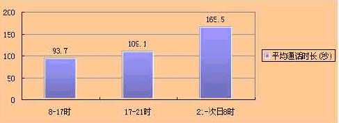 在同一調(diào)查中還有電話用戶在一天內(nèi)不同時(shí)段平均通話時(shí)長,具體情況見圖2所示。