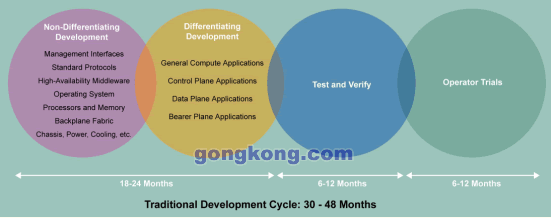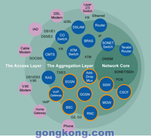 ATCA正在被廣泛應(yīng)用于無線網(wǎng),見圖2中橙色園環(huán)部分,這是由市場對成本效益,快速部署方案的需求驅(qū)動(dòng)的。服務(wù)提供商和TEM均認(rèn)識到:用戶愿意為3G網(wǎng)絡(luò)的先進(jìn)功能所付出的只能是少量的附加費(fèi),因此從2G/2.5G向3G轉(zhuǎn)換必須以盡可能低的成本和盡可能靈活的方案來實(shí)施,許多TEM已經(jīng)將ATCA看成滿足快速發(fā)展的無線市場需求的唯一技術(shù)。若基于雙星千兆以太網(wǎng)交換互連,ATCA的性能已經(jīng)很好的滿足無線網(wǎng)要求,因?yàn)檫@些網(wǎng)絡(luò)實(shí)質(zhì)上是低帶寬而高運(yùn)算密度的網(wǎng)絡(luò),對于實(shí)時(shí)敏感的語音應(yīng)用而言,千兆以太網(wǎng)的高速度已經(jīng)消除了延遲的問題。