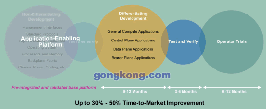 摩托羅拉將這種預(yù)集成并驗(yàn)證的基礎(chǔ)平臺(tái)稱之為面向應(yīng)用的平臺(tái),采用這個(gè)方式可以極大的加快進(jìn)入市場的速度,使TEM專注于開發(fā)自己產(chǎn)品的差異化功能與內(nèi)容。基于標(biāo)準(zhǔn)的平臺(tái)同時(shí)具有豐富的核心能力,從硬件,OS到高可用中間件與管理接口,它不是為單一應(yīng)用而設(shè)計(jì),而是為廣闊市場準(zhǔn)備的通用平臺(tái)。