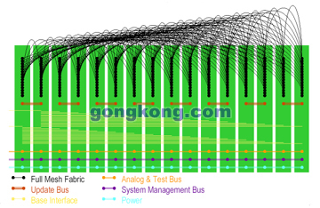 這是一種全新的數(shù)據(jù)連接結(jié)構(gòu),在這種"交換結(jié)構(gòu)"的支持下,任何一次數(shù)據(jù)釋放,不管它在哪一個連接器的哪一個Pin,都有一條單向的數(shù)據(jù)通路通向任何它想去的連接器的任何Pin。這種數(shù)據(jù)連接是通過一種交換元件動態(tài)地對數(shù)據(jù)通路進行連接和斷開,從而實現(xiàn)高速數(shù)據(jù)傳輸。