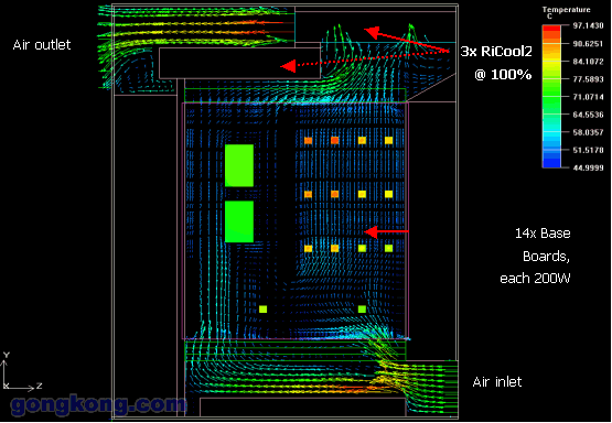 根據(jù)13U ATCA Shelf,威圖公司做了熱量以及風(fēng)量的模擬分析: