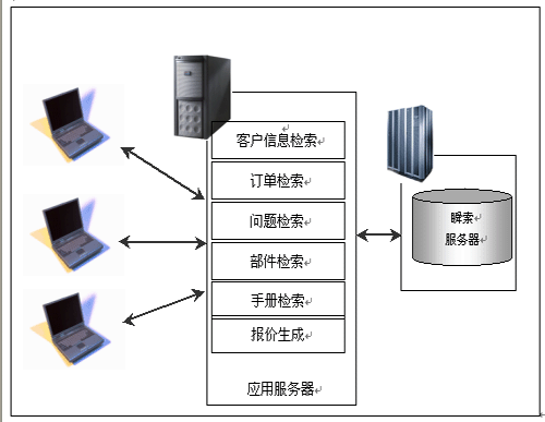前臺接待人員接到客戶的請求之后,可以根據(jù)客戶提供的信息查詢到該客戶的所有相關(guān)信息,包括姓名、電話號碼、地址、所持有的產(chǎn)品號、歷史的購買和維修記錄等;根據(jù)用戶的問題描述,查詢出歷史記錄中相同的問題及解決方法,從而提供給用戶詳細(xì)的信息(維修方法,所需部件,需要的時間和詳細(xì)報價等);得到客戶的同意后,為用戶生成訂單。