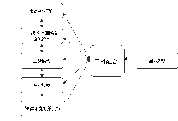 三網(wǎng)融合,需要巨大的市場需求空間、成熟的IT技術(shù)/基礎(chǔ)設(shè)施、適宜的業(yè)務模式、可觀的產(chǎn)業(yè)規(guī)模以及良好的政策支持和法律環(huán)境等必備條件的出現(xiàn)。
