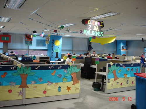 由于這種獨(dú)特的管理方式吸引了眾多的同行前來(lái)參觀,該中心特別安排了熱情的Sally負(fù)責(zé)導(dǎo)游。Sally帶我們參觀說(shuō)的第一句話(huà)就是:“我真是喜愛(ài)我們的呼叫中心,這里的年輕人富有創(chuàng)意,充滿(mǎn)激情,他們非常喜歡在這里工作。”于是我們參觀了“蜘蛛俠”,“蒙娜麗莎”,“大英帝國(guó)”,“典雅餐廳”,“熱帶公園”,“幾何世界”,“海底世界”,“白色圣誕節(jié)”等不同的Pod,實(shí)在是好像到了聯(lián)合國(guó)。