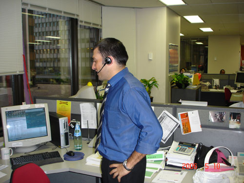Colonial公司是一家大型的銀行業(yè)務(wù)呼叫中心,座落在悉尼市區(qū)最熱鬧的喬治大街附近,相當(dāng)于我們的上;春B贰_@里的幾百個(gè)座席分布在寫(xiě)字樓的好幾個(gè)樓面,所有座席都是使用大北歐的無(wú)線(xiàn)耳嘜-GN9120。筆者記得上月去東京參觀HONDA的呼叫中心,那里只有不到三十個(gè)一線(xiàn)的座席代表使用無(wú)線(xiàn)耳嘜,這里則是所有人都配備了這種先進(jìn)的無(wú)線(xiàn)設(shè)備。筆者看到不少員工站著工作,還有少數(shù)走動(dòng)辦公,員工在座位上可以輕松轉(zhuǎn)身,隨時(shí)調(diào)整姿勢(shì),讓身體處于松弛狀態(tài),這種輕松自如想必電話(huà)線(xiàn)那頭的客戶(hù)也感同身受。呼叫中心的經(jīng)理Venessa告訴筆者,這里的服務(wù)內(nèi)容比較豐富,對(duì)員工的業(yè)務(wù)能力要求很高,所以他們?yōu)閱T工提供一流的工作環(huán)境以減少人員流失率,降低招聘和培訓(xùn)成本,提高客戶(hù)滿(mǎn)意度。