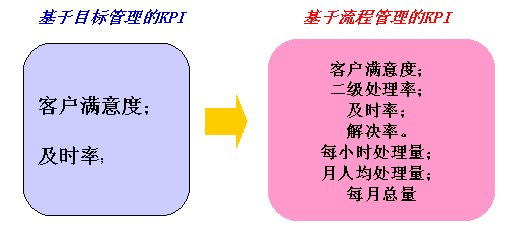 從上圖可看出:原來基于目標的KPI更多關注結果,而基于流程的KPI不僅關注結果,而且更關注流程效率,基于流程的KPI使所有人員在日常工作中更加關注和重視流程。