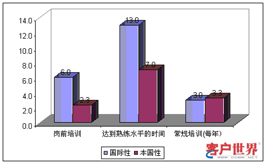 本地性呼叫中心的工作強度明顯高于國際性呼叫中心。本地性呼叫中心平均每天處理100位客戶的要求而國際性呼叫中心僅處理90位。這一區(qū)別也表現(xiàn)在平均通話時間上面。本地性呼叫中心的平均通話時間是4.3分鐘而國際性呼叫中心是8分鐘。