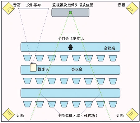 會(huì)場(chǎng)設(shè)計(jì)的好壞是視頻會(huì)議系統(tǒng)實(shí)施成敗的關(guān)鍵。視頻會(huì)議系統(tǒng)并不單純是將幾個(gè)視頻交換平臺(tái)和終端通過(guò)網(wǎng)絡(luò)連接起來(lái)就可以順利運(yùn)行了,需綜合考慮會(huì)場(chǎng)的網(wǎng)絡(luò)環(huán)境、位置及大小、燈光和電源等因素,才能在會(huì)議音視頻質(zhì)量、會(huì)議功能、操作簡(jiǎn)便性及穩(wěn)定性等方面發(fā)揮最優(yōu)的功能。