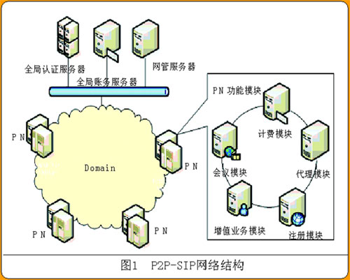 PN在地理上散布各處,邏輯上根據(jù)選用的P2P機(jī)制的不同可以是環(huán)形的(Chord協(xié)議)、矩陣的(CAN協(xié)議)、網(wǎng)狀的(Pastry協(xié)議和Tapestry協(xié)議);镜腜N至少包括注冊(cè)和代理兩種功能。為進(jìn)行商業(yè)運(yùn)營,可以部署全局認(rèn)證服務(wù)器、全局賬務(wù)服務(wù)器和網(wǎng)管服務(wù)器等等,用于管理全部的用戶和所有的PN。