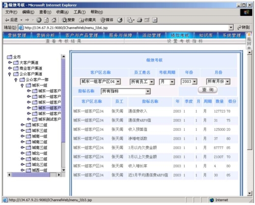 作為電信營銷服務(wù)支撐系統(tǒng),其主要功能是支撐營銷人員開展?fàn)I銷活動,并通過功能完善的考核系統(tǒng)幫助各級人員進(jìn)行工作管理。本系統(tǒng)可以對KPI指標(biāo)進(jìn)行靈活的設(shè)定,可以靈活定義多種參與考核的數(shù)據(jù)來源,使得各級主管能夠?qū)蛻艚M、社區(qū)(商業(yè)客戶區(qū)、農(nóng)村統(tǒng)包區(qū))的營銷服務(wù)工作進(jìn)行考核評分。考核周期可以通過參數(shù)進(jìn)行設(shè)定(一般以月為單位)。