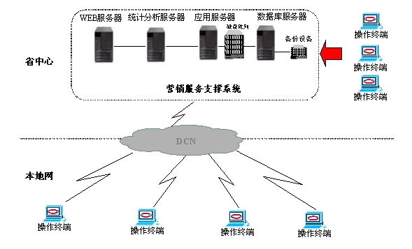 省中心/分公司營銷服務(wù)支撐系統(tǒng)由兩臺IBM服務(wù)器形成雙機(jī)集群,同時安裝有數(shù)據(jù)庫服務(wù)器、WEB服務(wù)器、應(yīng)用服務(wù)器、統(tǒng)計分析服務(wù)器。