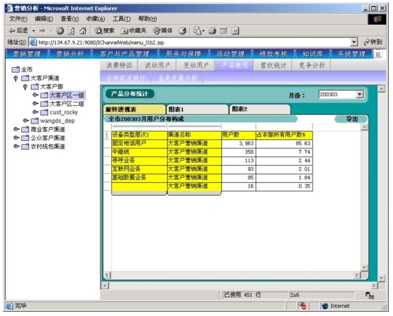 本系統(tǒng)是以市場為導(dǎo)向、客戶為中心、效益為目標(biāo)的電信營銷和服務(wù)的支撐系統(tǒng),為企業(yè)經(jīng)營服務(wù)和營銷戰(zhàn)略提供有力的支撐,通過對業(yè)務(wù)收入、業(yè)務(wù)發(fā)展以及市場競爭的深入分析,從而達(dá)到留住老客戶、發(fā)現(xiàn)新客戶,了解競爭對手動態(tài),及時掌握市場變化趨勢的目的。