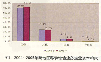 電信市場(chǎng)的開(kāi)放吸引了大量中小企業(yè),而他們進(jìn)入的領(lǐng)域也大多集中在增值服務(wù)市場(chǎng)。目前,中國(guó)的電信增值服務(wù)市場(chǎng)的各類(lèi)中小企業(yè)已達(dá)到上萬(wàn)家,業(yè)務(wù)范圍幾乎涉及全部增值領(lǐng)域,成為通信經(jīng)營(yíng)服務(wù)業(yè)務(wù)的重要組成部分。在1.4萬(wàn)家電信增值企業(yè)中,民營(yíng)企業(yè)比例占到55.37%,民營(yíng)資本已經(jīng)成為該市場(chǎng)的主體。