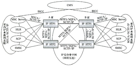 IP STP的建設方案可參考傳統(tǒng)No.7信令網骨干層面的建設方案,即:IP STP成對設置以保證安全性;初期在全國分大區(qū)設置IP STP對,所有IP