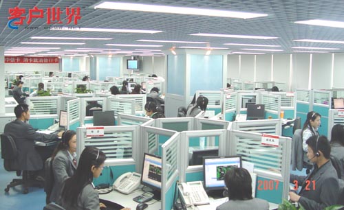 2003年,中信銀行信用卡中心客戶服務中心在深圳成立,歷時三年多,客服中心已經擁有近300個座席,具備服務200多萬客戶和400多個網點的服務能力,成為中信銀行的一張人氣名片?头行默F(xiàn)有客服代表200多名,平均年齡不到26歲。中信銀行信用卡中心7*24小時的普通話、廣東話、英語的咨詢服務就是由他們提供。