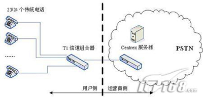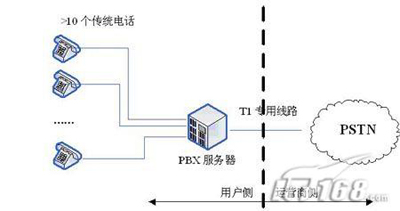 相反,在傳統(tǒng)的PBX或新興的IP-PBX中,這些功能模塊通常配置在用戶(hù)側(cè)的網(wǎng)絡(luò)元素上,而且通過(guò)一條或多條專(zhuān)用線(xiàn)路T1(傳統(tǒng)PBX)或DSL(新興PBX)連接到中心辦公室,用PSTN的連接。圖1說(shuō)明了PBX和Centrex服務(wù)的區(qū)別。而且,DSL還能在相同的鏈路支持語(yǔ)音和數(shù)據(jù)的傳輸,而且維護(hù)鏈路的成本也遠(yuǎn)遠(yuǎn)小于維護(hù)T1所需的代價(jià)。另外,由于呼叫控制能夠在本地裝載,而IP-PBX能夠支持Internet連接,因此每23(T1-PRI)或24(T1-CAS)個(gè)電話(huà)終端就不再需要一條專(zhuān)用線(xiàn)路T1的支持了。(后續(xù)將進(jìn)一步說(shuō)明)