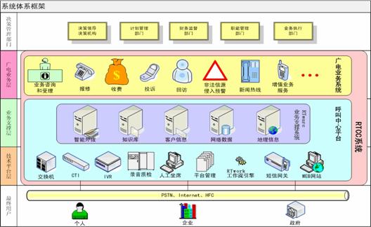 該平臺(tái)系統(tǒng)由座席管理軟件RTAgent (V1.0)、廣電呼叫業(yè)務(wù)支撐軟件 RTWare (V1.0)、工作流引擎軟件 RTWork (V1.0)、PBX(語(yǔ)音交換機(jī))、CTI中間件、IVR自動(dòng)語(yǔ)音應(yīng)答系統(tǒng)、錄音質(zhì)檢系統(tǒng)、平臺(tái)管理系統(tǒng)、短信網(wǎng)關(guān)、Web網(wǎng)站等十大功能模塊組成;