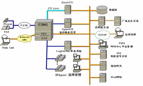 OmniCTI模塊(CTI中間件):平臺(tái)中心通信控制模塊,負(fù)責(zé)所有模塊之間信息交互;