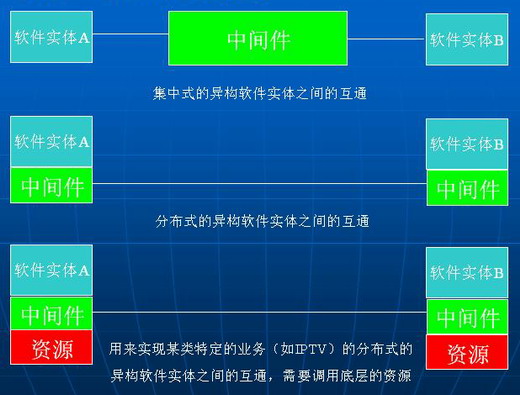 應(yīng)用程序借助這種軟件在不同的技術(shù)之間共享計算資源和網(wǎng)絡(luò)資源;