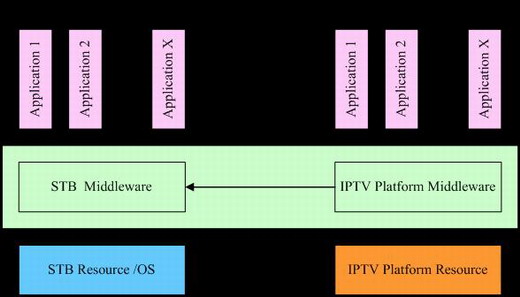 位于IPTV設(shè)備底層系統(tǒng)資源(包括硬件、操作系統(tǒng)和網(wǎng)絡(luò)資源)和應(yīng)用程序之間的獨立的系統(tǒng)軟件或通用服務(wù)程序;