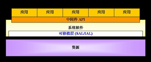 應(yīng)用層不直接調(diào)用和操作資源,而是由系統(tǒng)軟件層對資源進(jìn)行抽象和封裝,提供給應(yīng)用層調(diào)用。這個中間層分離了硬件和應(yīng)用層,使應(yīng)用層具有非常強的可移植性。系統(tǒng)軟件層主要包括中間件核心層模塊和可移植層模塊。