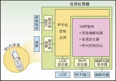 在這些設(shè)計(jì)中,一般的人機(jī)界面(MMI)以及VoIP通話控制功能使用傳統(tǒng)的應(yīng)用處理器(ARM、MIPS等),而DSP則用于語(yǔ)音到數(shù)據(jù)包到語(yǔ)音的轉(zhuǎn)換。此方法在便攜設(shè)備的設(shè)計(jì)中暴露出很多缺點(diǎn)。