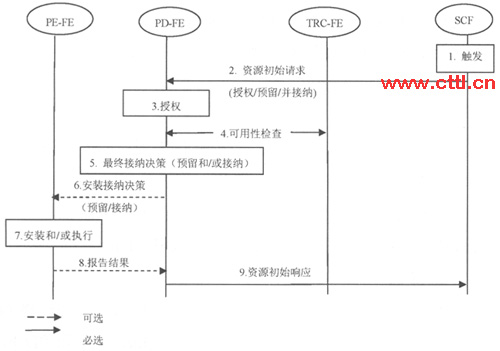 在CPE發(fā)起資源請求的場景下,經(jīng)過上面第3步授權(quán)后(見圖2),PD-FE將向SCF返回授權(quán)結(jié)果。隨后的流程可以描述如下。