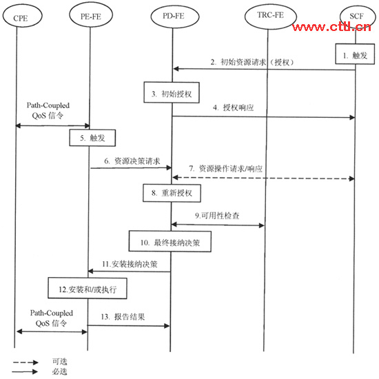 圖3 CPE發(fā)起QoS控制的授權(quán)、預留和接納流程