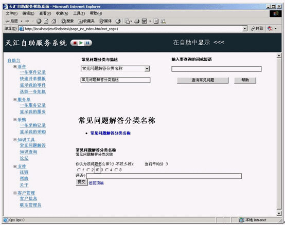 但是,隨著組織轉(zhuǎn)向自助服務(wù),對(duì)復(fù)雜維護(hù)過(guò)程的需要將隨之出現(xiàn)。如果要采用自助服務(wù),必須從一開(kāi)始就做得很好。上圖為人性化的天匯幫助臺(tái)系統(tǒng)的自助服務(wù)功能界面設(shè)計(jì)。