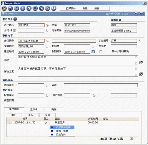 圖:添加事件明細(xì)來(lái)記錄采取的服務(wù)支持動(dòng)作