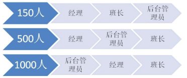 當(dāng)員工人數(shù)到達(dá)500人的時候,班長往往有30位左右。很多經(jīng)理已經(jīng)不能夠?qū)γ课话嚅L有足夠的了解,更不要說去認(rèn)識大部分員工。這個時候,經(jīng)理對班長的比例過寬,需要強(qiáng)化后臺管理員的角色。比如排班、績效、質(zhì)量管理(而不僅是評估)、信息分析(數(shù)據(jù)和報告)、行政、培訓(xùn)等工作中,這些管理輔助角色都在逐漸強(qiáng)化。而每一個后臺管理者可能成了經(jīng)理的直接下屬,他們起草的流程和制度,來由經(jīng)理決策。某種程度上說,他們比班長的影響力更大,因為班長還是影響著12-20人。有時候后臺管理員也決定了班長的時間精力分配,那是班長最寶貴的資源。那么誰是管理者呢?首先是經(jīng)理,其次是后臺管理員,最后才是班長。