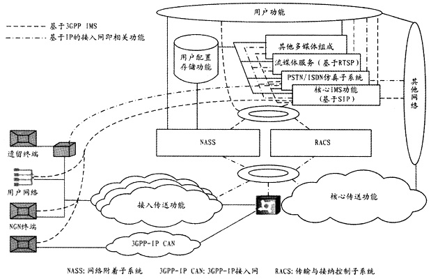 在IMS支持的固網(wǎng)接入方式下,位于控制平面的RACS和NASS兩個(gè)子系統(tǒng)有效地實(shí)現(xiàn)了業(yè)務(wù)控制與傳送功能相分離,向下感知傳送網(wǎng)絡(luò)的資源使用情況,為上層應(yīng)用提供接口。通過資源接納控制,確保正確合理地使用傳送網(wǎng)絡(luò)資源,從而保證業(yè)務(wù)的服務(wù)質(zhì)量(QoS),并防止帶寬和業(yè)務(wù)被盜用的現(xiàn)象發(fā)生。