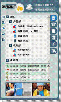 這一系列產(chǎn)品的特點主要是針對國內(nèi)網(wǎng)絡(luò)的特點研發(fā),適應(yīng)能力強,兼容性廣。并且配套提供 IP PBX 綁定的聊天工具,該工具界面(如圖)同QQ、MSN貌似。按所分配的賬戶密碼登陸,可對個人和PBX的彩鈴和分機狀態(tài)調(diào)整,可以按需要更換指定總機和交接總機,在小助理上可以使用個人電話通訊錄,支持在線信息群發(fā)和手機短信群發(fā)等功能。